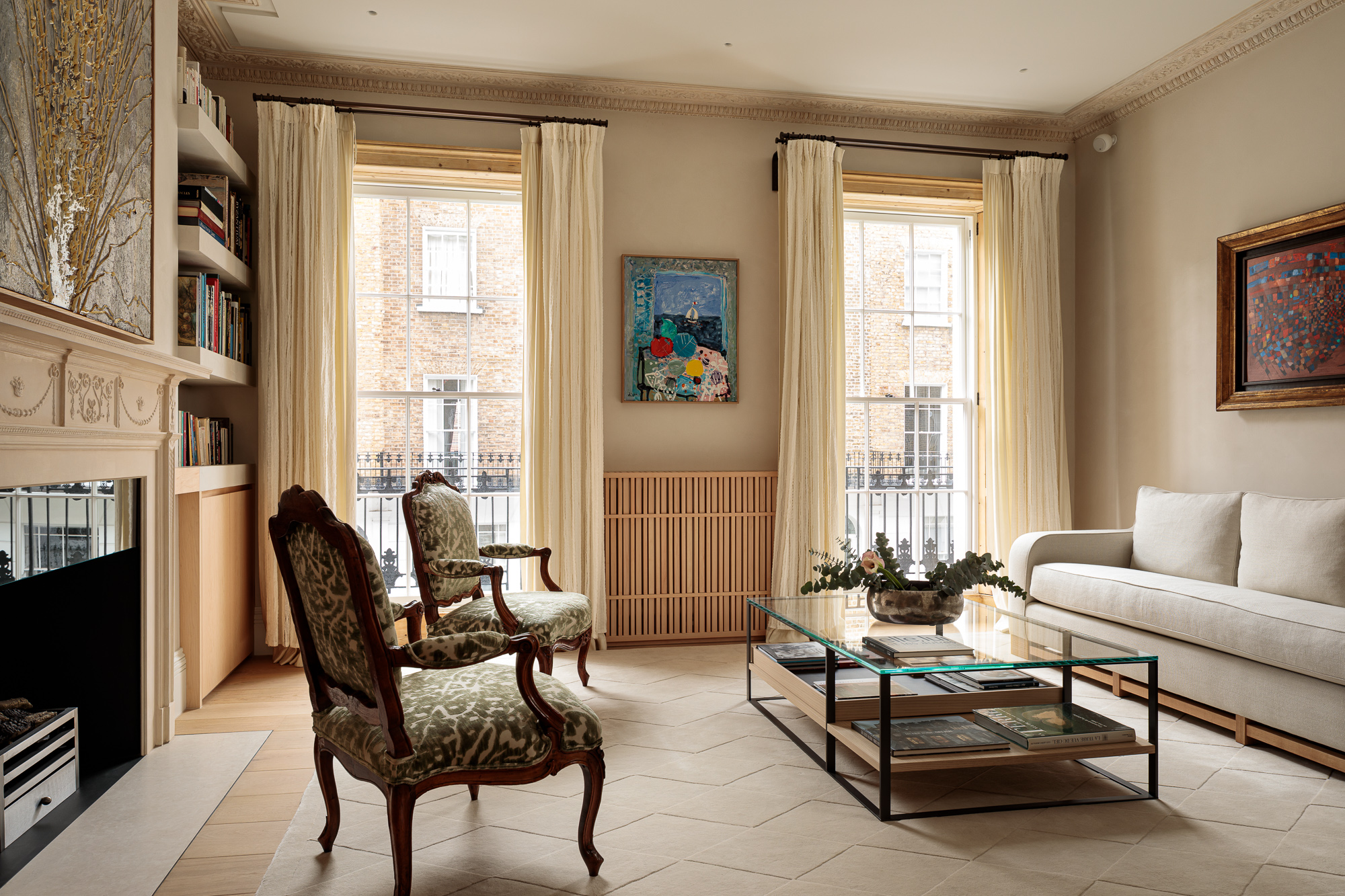 This exquisite listed Knightsbridge property was restored maintaining all of its original period features, fibrous plaster work having years of paints removed back to the original plaster, fire places rejuvenated.
